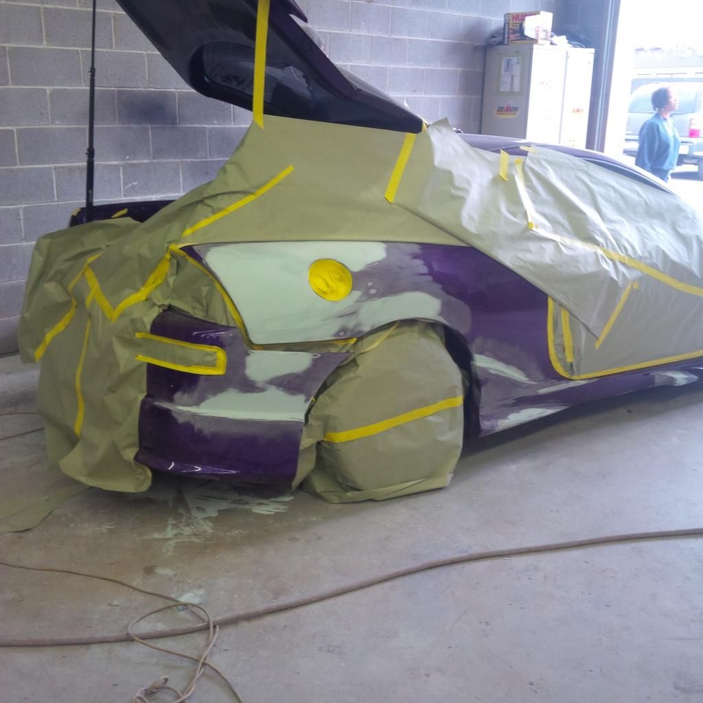 2 weeks away from a big car show and a guy in a box truck left his truck in gear in a parking lot and it rolled into my baby :'(. But after pulling all nighters they were able to have her done and repaired the night before the car show